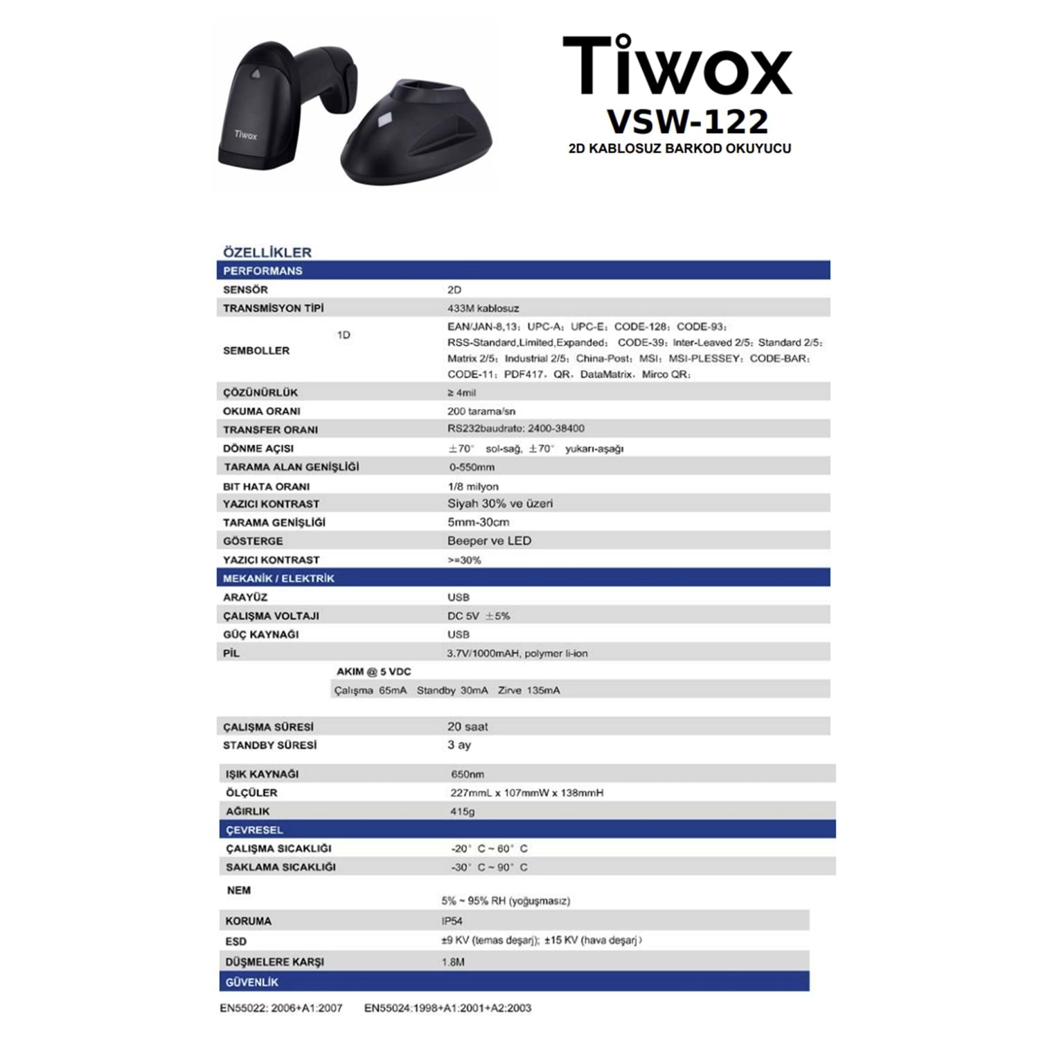 Tiwox VSW-122 2D USB Kablosuz (Wi-Fi +Batarya+Cradle) Barkod Okuyucu
