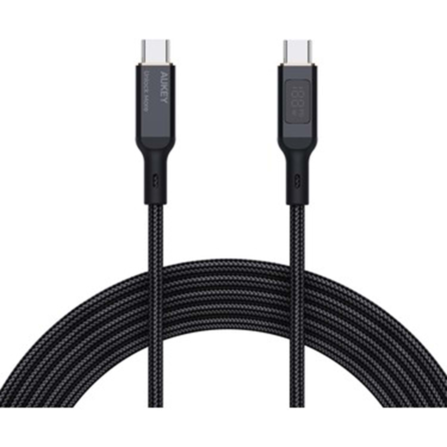 Aukey CB-MCC102-BK 100W Naylon Örgülü 480Mbps Type-C Type-C LCD Ekranlı(1,8m)